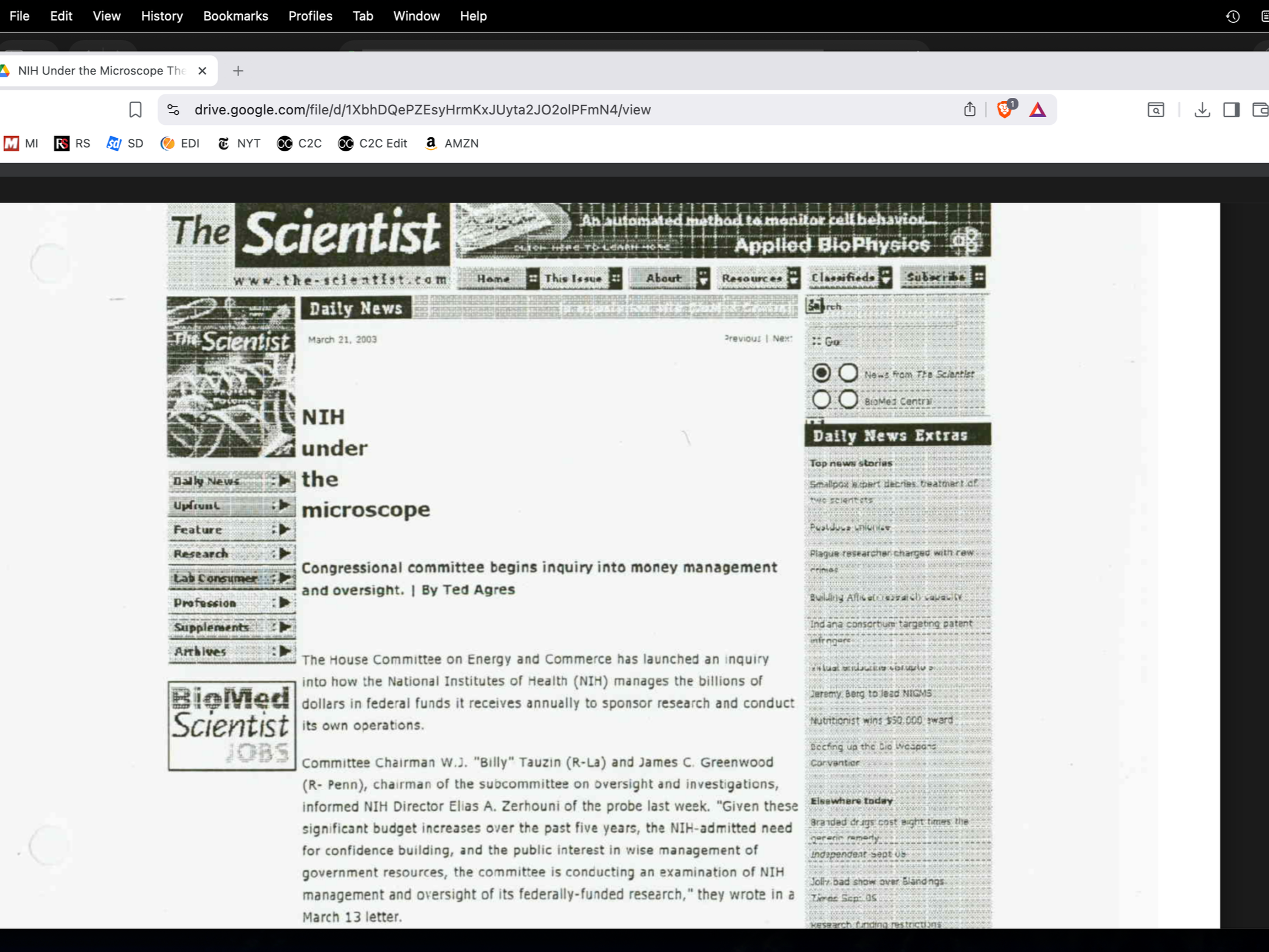 After Eric testified, Congress launched an agency-wide investigation of NIH’s oversight of billons of dollars in grants, citing the continued funding of Coulston despite the documented violations of the Animal Welfare Act and FDA Good Laboratory practice regulations. In its letter launching the investigation, Congress demanded from the NIH “all files related to TCF [the Coulston Foundation] maintained by the grants management and program officers who have overseen NIH grants to TCF.”